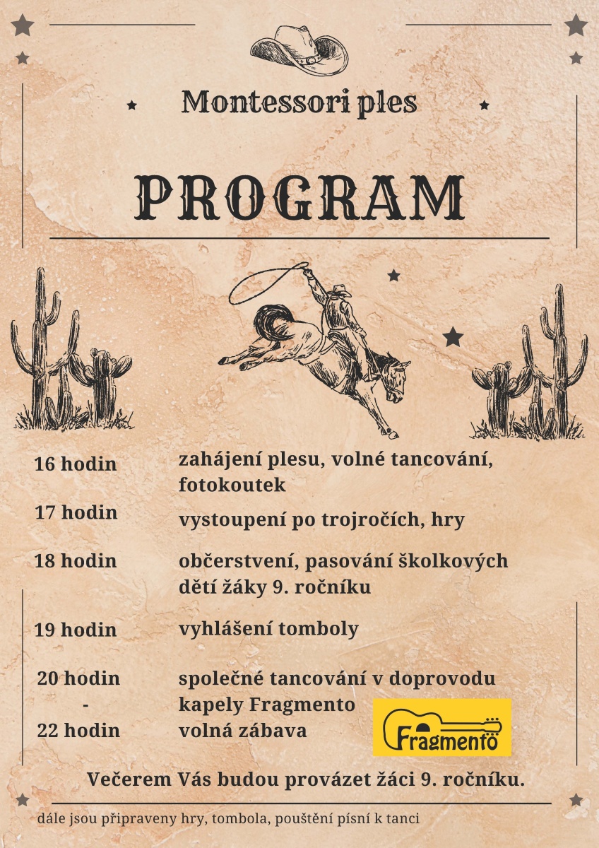 srdečně Vás zveme na ples, který pořádá 3. trojročí ZŠ Montessori. Ples se koná v pátek 15. 5. od 16 hodin v Buena Vista klubu v Kollárově ulici č. 20.